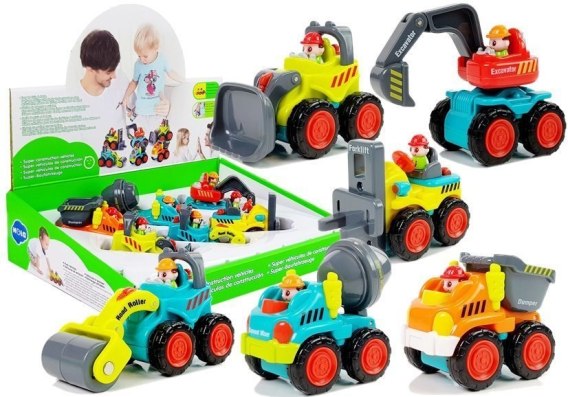 Każdy z rodzaju autek posiadaoperatora,obrotowe kółka, dzięki czemu pojazdy jeżdżą na popych, orazruchome elementy— walec, ramię czy łyżkę. Budowa pojazdów uwzględniła ich najważniejsze elementy konstrukcyjne, co w połączeniu z barwną i wyraźną kolorystyką prezentuje się rewelacyjnie. Zabawkowe pojazdy odznaczają się swymkompaktowym wymiarem, który ułatwia chwytanie i zabawę, a także przechowywanie. Ze względu na życie solidnego materiału, chłopcy mogą używać swych zabawek zarówno w domu, jak i na zewnątrz.