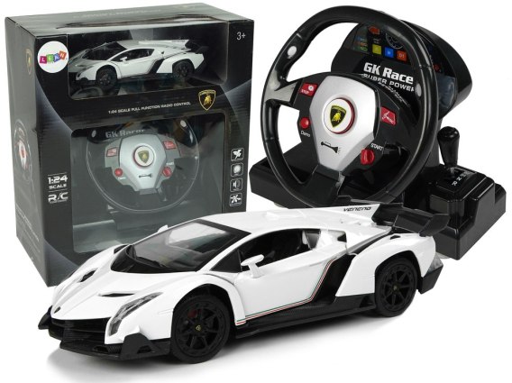Auto Zdalnie Sterowane Lamborghini Veneno Biały Kierownica Dźwięk Światła
