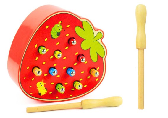 Drewniana Gra Zręcznościowa Złap Robaczka Truskawka Czerwona