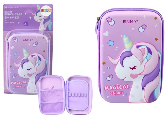 Duży Piórnik Z Jednorożcem Rozkładany 3D Fioletowy 23x15x5 cm