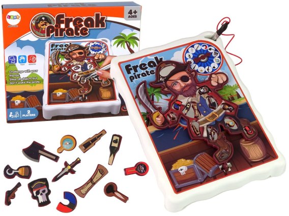 Na planszy znajduje 12 różnych miejsc na ciele pirata na którym należy położyć małe akcesoria należące do pirata. Zakręć kołem, sprawdź co wskaże strzałka. Dany przedmiot spróbuj ostrożnie wyciągnąć z danej części. Ale uważaj! Wystarczy, że lekko dotkniesz powierzchni pirata, a on zadrży, zacznie brzęczeć i przegrywasz. Spróbuj go nie obudzić.