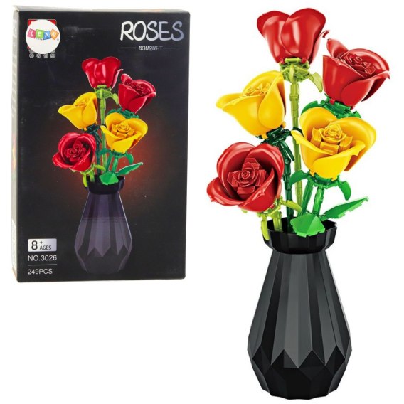 Klocki Konstrukcyjne Bukiet Róż W Wazonie Czerwone Żółte 249 el.