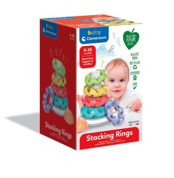 ✅ 5 pierścieni w różnych rozmiarach i kolorach ✅ Różne powierzchnie - stymulacja dotykowa i sensoryczna ✅ Wspiera rozwój manualny i koordynację ruchową ✅ Pomaga w nauce kolorów, kształtów i wielkości ✅ Uczy relacji przyczynowo-skutkowych poprzez zabawę ✅ Bezpieczna zabawka dla najmłodszych - bez baterii ✅ Projektowana i opracowana we Włoszech