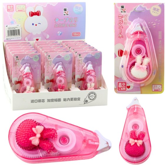 Korektor W Taśmie Myszka Szkolny Biurowy Ozdobny Zajączek Różowy 8mm x 6m