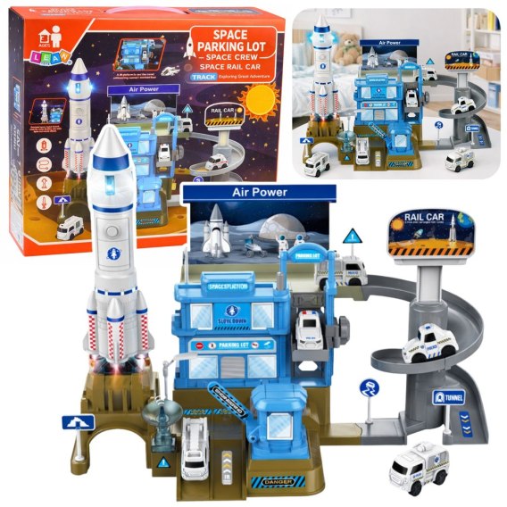 BAZA KOSMICZNA Z RAKIETĄ WIELOPOZIOMOWY PARKING ŚWIATŁA DŹWIĘKI