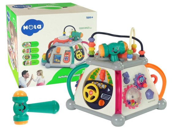 Wielofunkcyjna kostka edukacyjna rozwija zdolności manualne oraz wyobraźnię maluszka na wiele sposobów. Zabawka posiada pięć płaszczyzn: cztery boczne i jedną górną. Każda z nich jest inna i zaskakuje swoimi propozycjami ciekawej zabawy. Uważamy, że taki produkt na pewno zaabsorbuje nawet najbardziej wymagające pociechy. Solidne wykonanie i żywa kolorystyka dodatkowo przyciągają uwagę dziecka, zachęcając do niebanalnej zabawy.