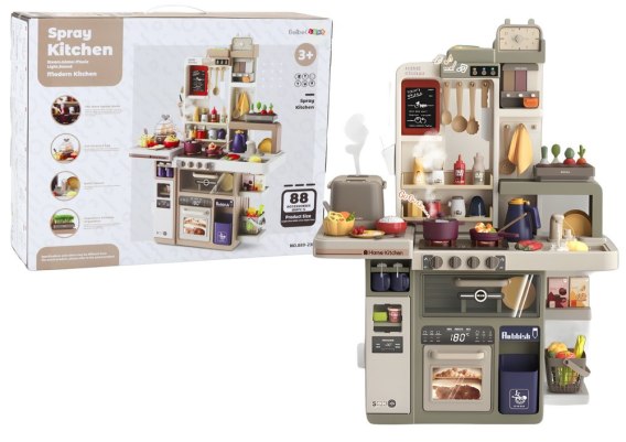 Główną atrakcją naszej kuchni jest realistyczny zestaw palników. Po włączeniu pierwszego pokrętła uruchamia się pierwszy palnik, a wtedy zaczynają świecić światła oraz wydobywa się para oraz dźwięk gotującej się wody. Para jest całkowicie bezpieczna, nie jest gorąca, co zapewnia pełne bezpieczeństwo podczas zabawy.