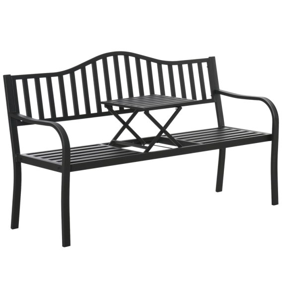 Ławka Ogrodowa Taras Ogród Park Metalowa Oparcie Stolik Czarna 150 cm