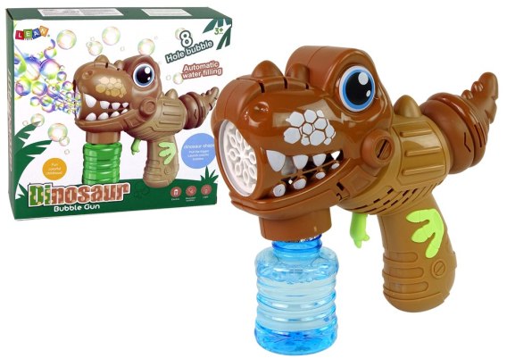 Zabawka jest podobna do małego dinozaura, spustem do uruchamiania baniek jest łapka. Z paszczy natomiast będzie wylatywać tysiące baniek. Automat do robienia baniek, posiada aż 10oczek, przez które wylatują banieczki. Dlaczego warto wybrać taką maszynę? Ponieważ w czasie, w którym człowiek przy użyciu klasycznego zestawu jest w stanie zrobić tylko jedną bańkę, maszyna może zrobić ich setki.