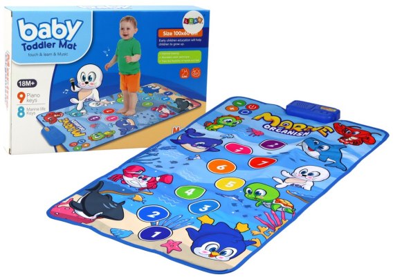 Powierzchnia taneczna maty wyposażona jest w 9 interaktywnych przycisków, które po naciśnięciu uruchamiają różne efekty dźwiękowe i melodie, zachęcając dziecko do aktywności i eksploracji. Natomiast po naciśnięciu w jedno ze zwierzątek, dziecko usłyszy odgłosy jakie wydaje to podwodne zwierze.
