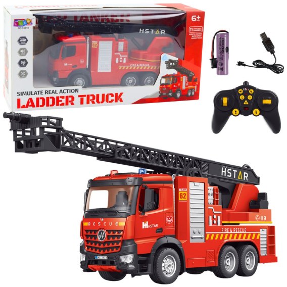 Wóz Strażacki Zdalnie Sterowany Wysuwana Drabina Rozpylanie Wody 2.4G 11CH