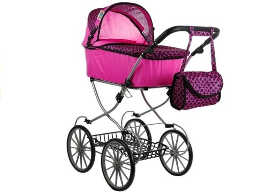 Czarno-różowy retro wózek ozdobiony jest graficznym wzorem w formie kółeczek, co dodaje mu ciekawego charakteru. Retro wózeczek z pewnością zainteresuje i zachęci do zabawy każdą małą opiekunkę — gwarantują to wymiary dopasowane do przeciętnego wzrostu kilkuletnich dziewczynek, a także konstrukcja inspirowana budową prawdziwych wózków dla dzieci. Co istotne — prezentowany retro model może rosnąć razem z dzieckiem, ponieważ posiada rączkę z możliwością regulowania jej wysokości. Wózek będzie odpowiedni dla wszystkich lalek i zabawek o maksymalnej długości 69 cm — duże wymiary gondoli z łatwością pomieszczą kilku zabawkowych pasażerów.