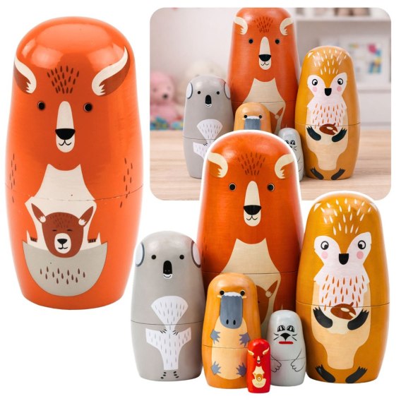 • 6 elementów matrioszki zwierzęta