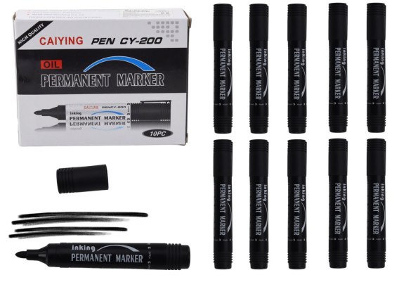 Zestaw Markerów Permanentnych Wodoodporne Czarne 10 Szt.