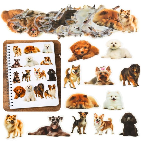 Zestaw Naklejki Pieski Różne Gatunki Śliskie Przeźroczyste 50 szt.